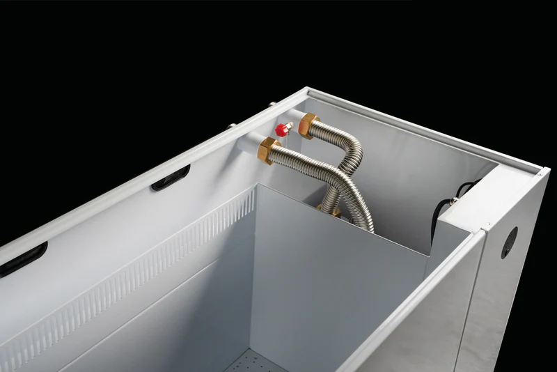 Streamlined design that eliminates the need for secondary heat exchange methods, relying solely on oil circulation, A convenient all-in-one configuration, combining a single tank with a dry cooler, requiring only the installation of tubing and wiring, Exceptional cooling performance: 21kW@38?, 24kW@35?, and 28kW@33?, Incorporates a standard water mist for enhanced heat dissipation, maintaining efficiency even in environments as hot as 42?, Equipped with built-in EC motors that automatically adapt fan speed in response to changes in ambient temperature, ensuring optimal energy efficiency.